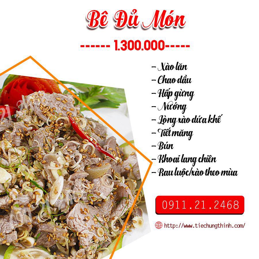 1. Mâm cỗ món chuyên Bê: có thể chế biến thành các món khá đa dạng và phù hợp với khẩu vị của nhiều độ tuổi như: Bê hấp lá lốt, Bê xào lăn, Lẩu bê. Đây là 3 món chính từ bê cũng có thể dùng làm món chủ đạo cho mâm chuyên món bê. Bạn có thể tham khảo mâm cỗ chuyên bê gợi ý của Nấu cỗ Hưng Thịnh: