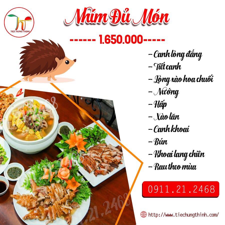 4. Chuyên nhím bao gồm các món: Nhím hấp, Nhím trộn kiểu Thái, Nhím xào lăn. Nhím là món ăn khá lạ bởi cách chế biến Nhím khá đặc biệt và tỉ mỉ. Thực đơn mâm chuyên Nhím gia đình bạn có thể tham khảo như là: