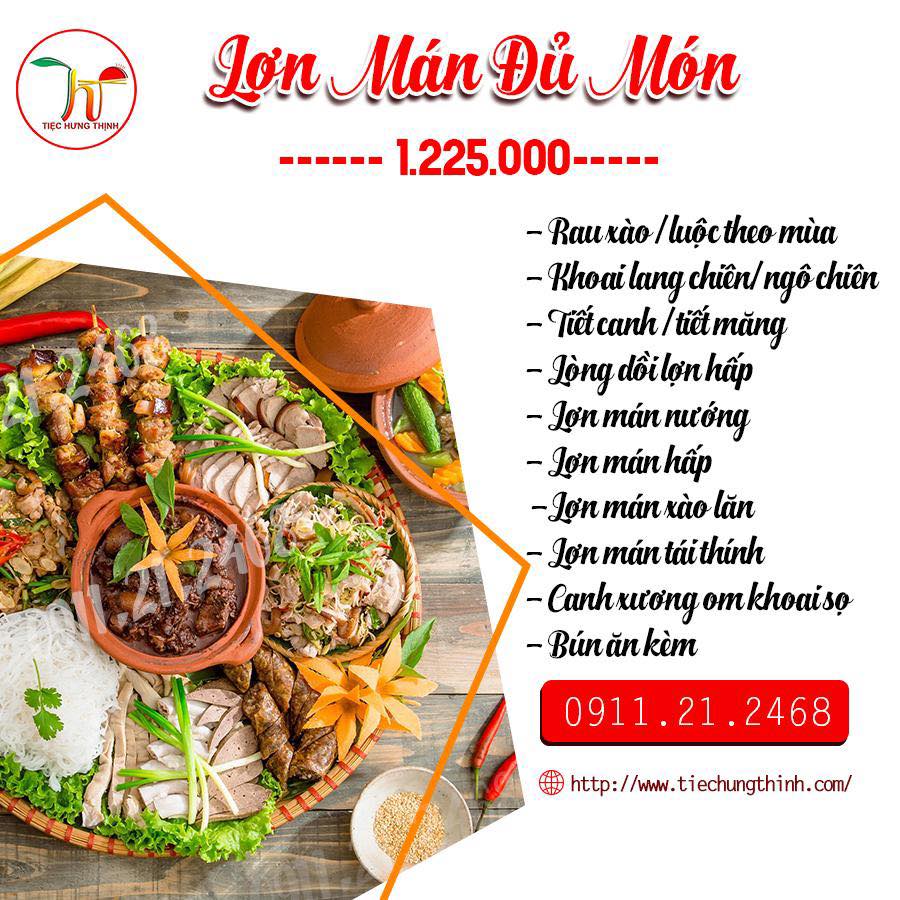 6. Chuyên lợn mán (250k/kg hơi) 1 cỗ bao gồm các món: Tiết canh lợn mán, Lợn mán hấp, Lợn mán xào lăn, Lợn mán nướng chả, Xương lợn mán om măng. Thịt lợn tuy quá quen thuộc với bữa cơm mỗi gia đình rồi. Tuy nhiên, cách chế biến các món lợn mán ở Nấu Cỗ Hưng Thịnh lại mang một nét rất riêng và đậm vị. Gia đình bạn có thể đặt một mâm cỗ hoàn chỉnh bao gồm: