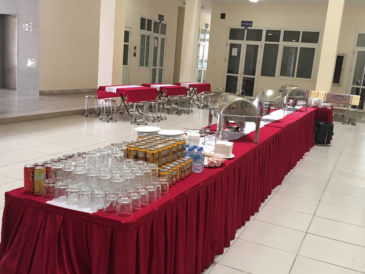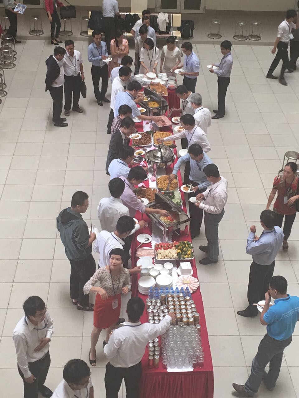 Ảnh: Quầy setup buffet nhìn từ tầng 3 xuống